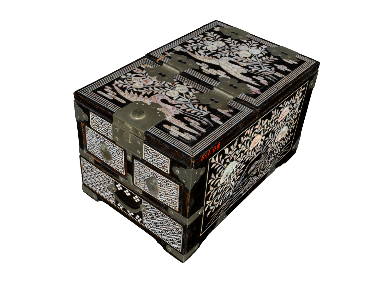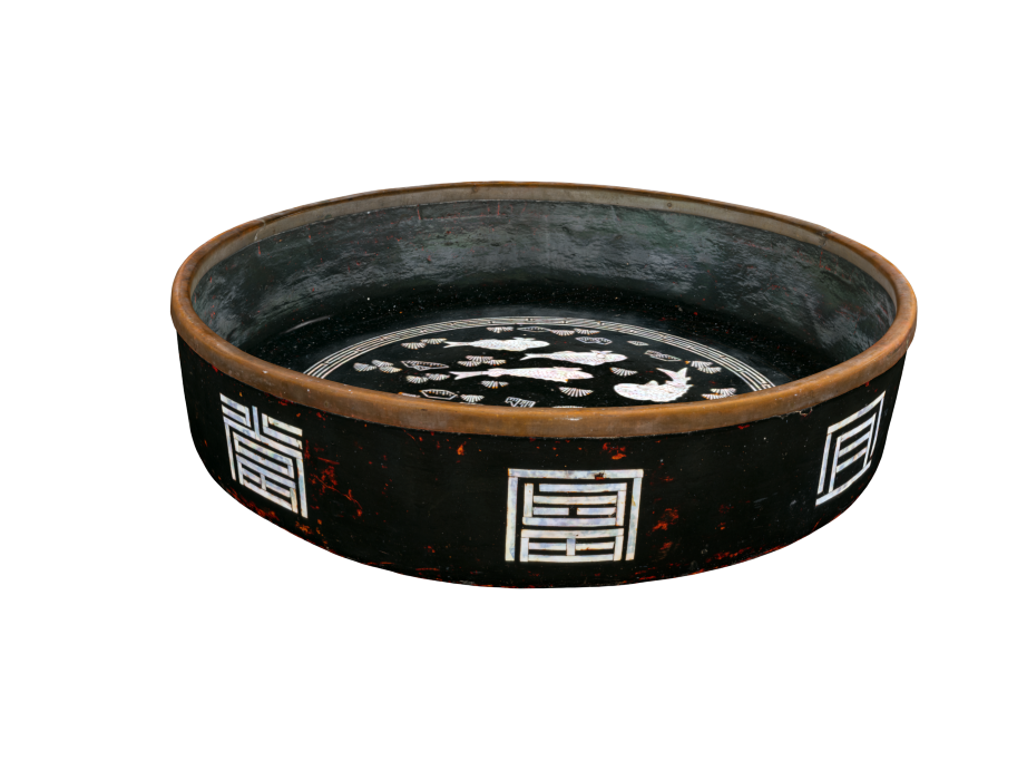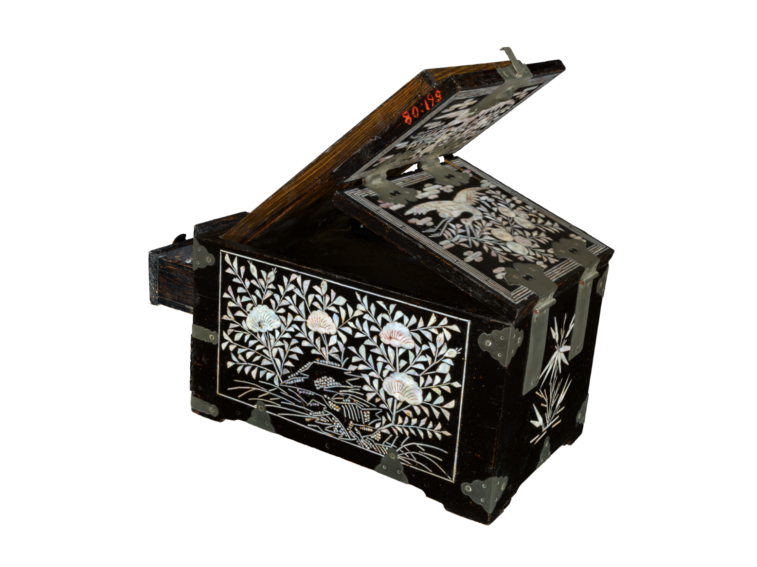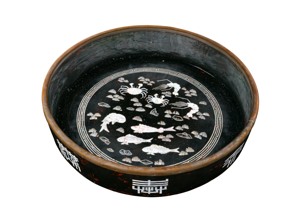 Black-lacquered Sewing Tray Inlaid with a Mother-of-Pearl Design